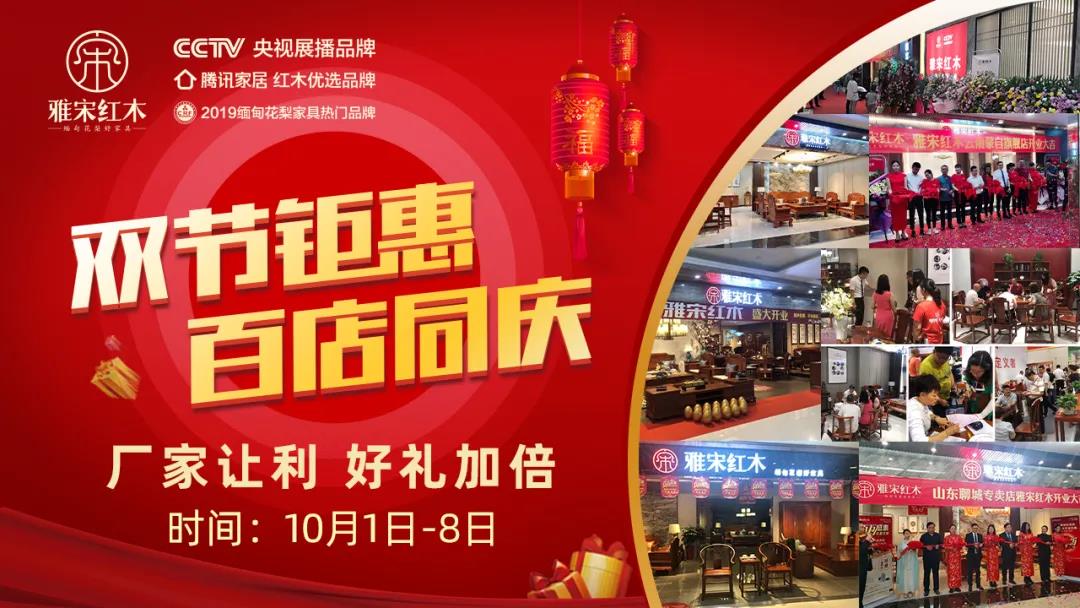 當中秋遇上國慶,舉國歡騰。此次特別的國慶節,騰訊家居優選品牌雅宋紅木推出“雙節鉅惠、百店同慶、廠家讓利”全國聯動活動,全國百家專賣門店統一行動,廠家讓利,多款家具超值鉅惠放送,開啟雅宋紅木2020金秋盛宴。